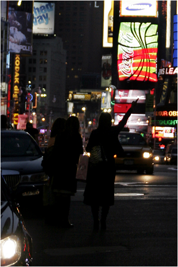 Hailing a cab –Time Square.