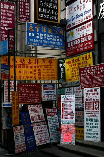 Street signs in front of business –Chinatown. to the right of the camera is a great little shop that sells fresh tofu, tofu-fa desert and rice noodles.