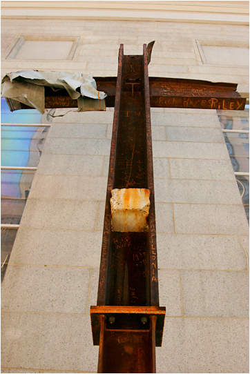 An I-beam from the World Trade Cneter on display outside St Peter's Church.
