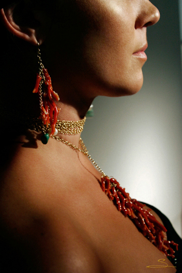 Red Coral Necklace & Earrings – made of undyed red coral, turquoise, freshwater pearl, and citrine.